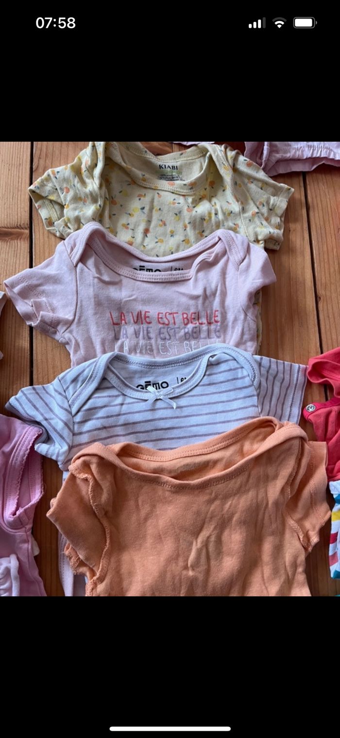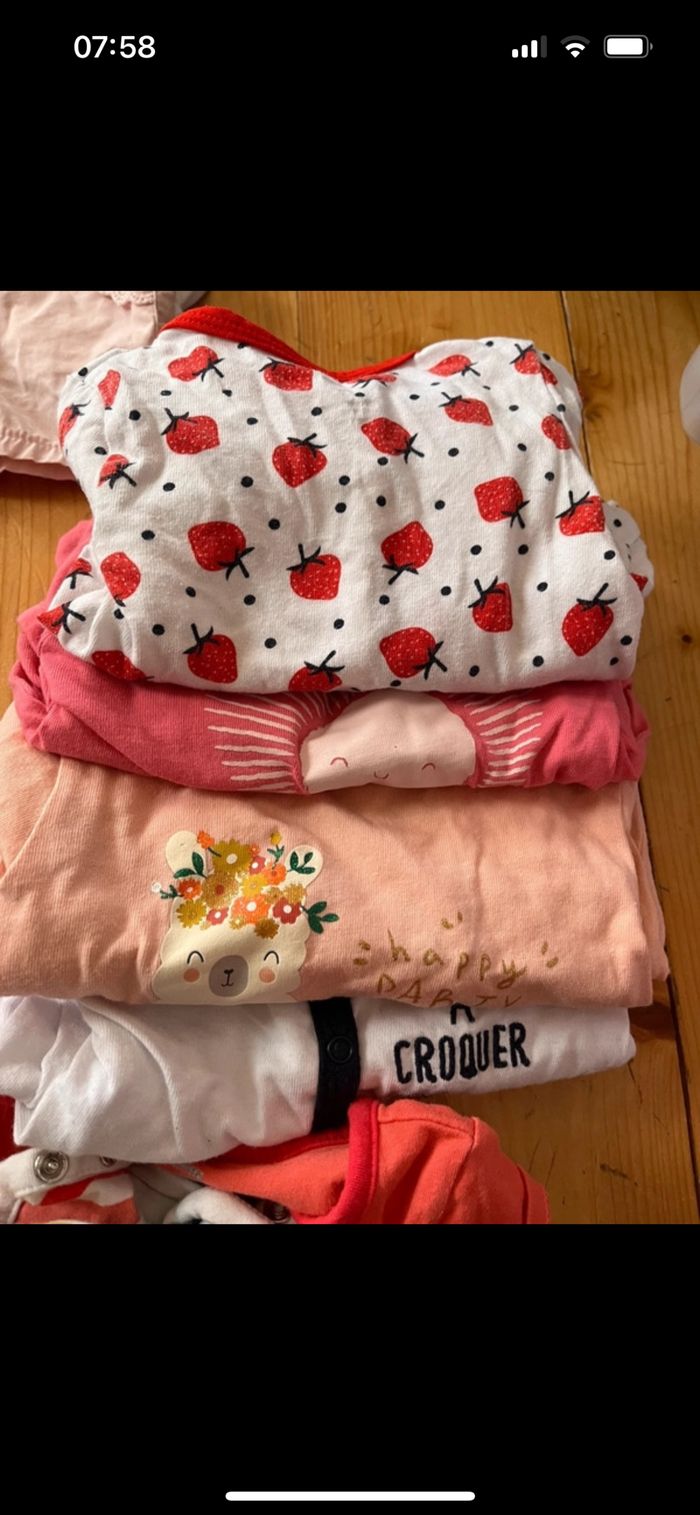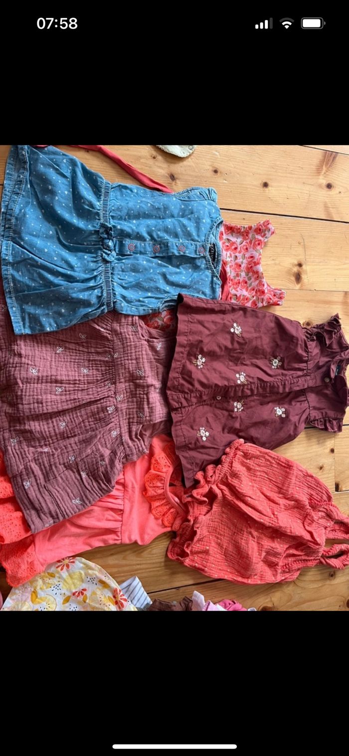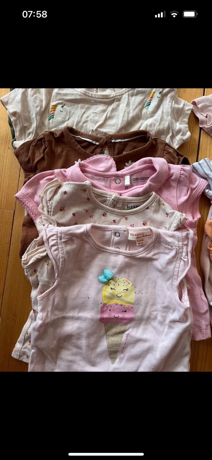 Vends lot de vêtement été pour bébé fille Très bon état T shirt short robe pijama body un peu de tout