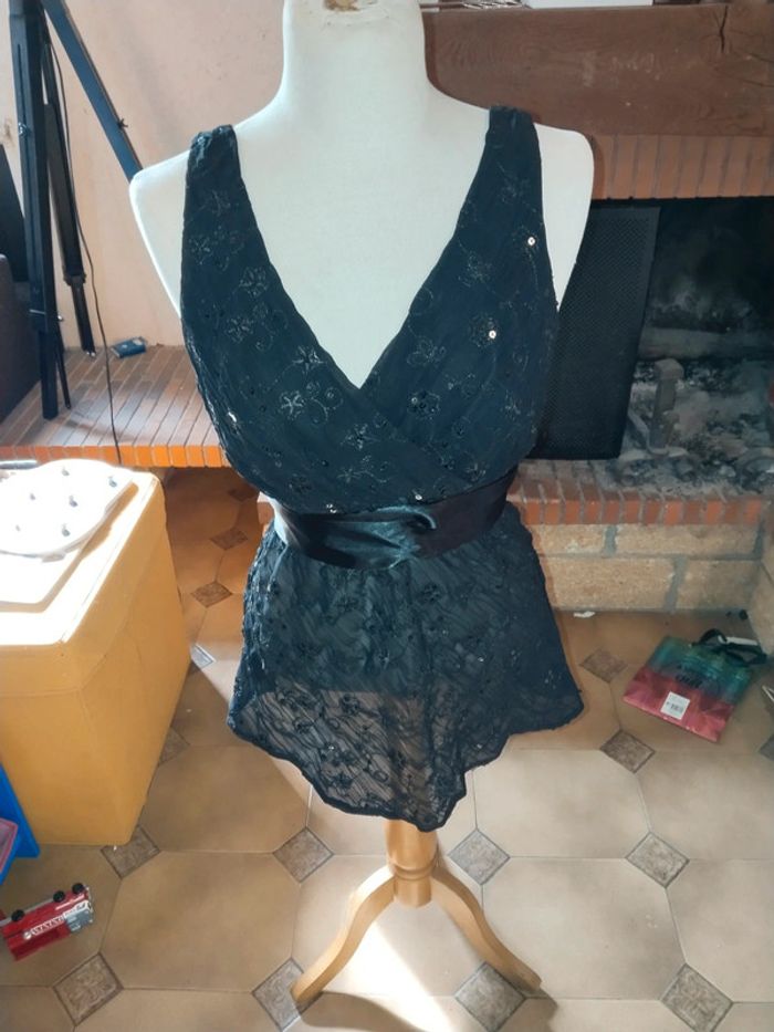 Avec turban en satin pour marquer le haut de la taille. État neuf col v devant et dans le dos #camaieu38 #camaieu #topfete38 #turbansatin #t38camille81190