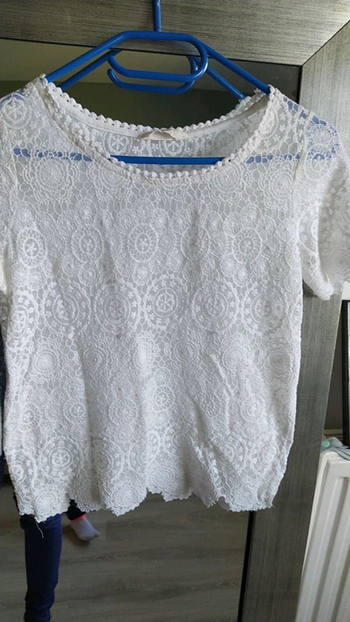 Top nafnaf blanc ajouré Quasi neuf Manches courtes Taille m
