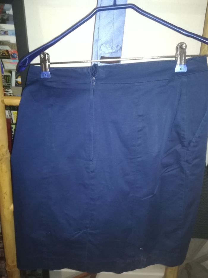 Jupe bleue avec fermeture éclair sur l'arrière.