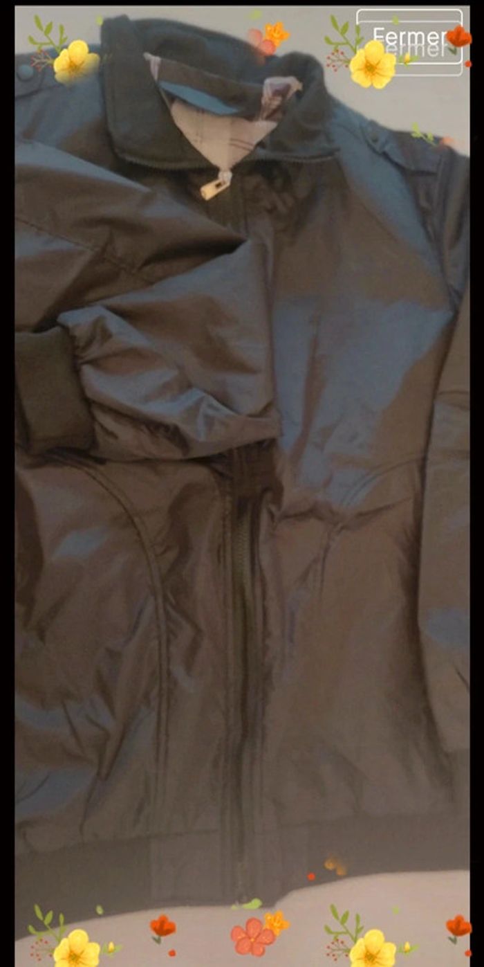 Blouson homme noir Elle est imperméable et doublée Multiples poches dont une a l intérieur Jamais portée ( Elle était fournie sans homme à l intérieur..😁) Pas d étiquette mais correspond à du XXL Achetée sur Amazon Réductions activées sur les lots