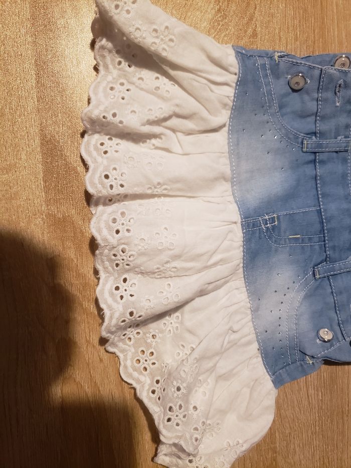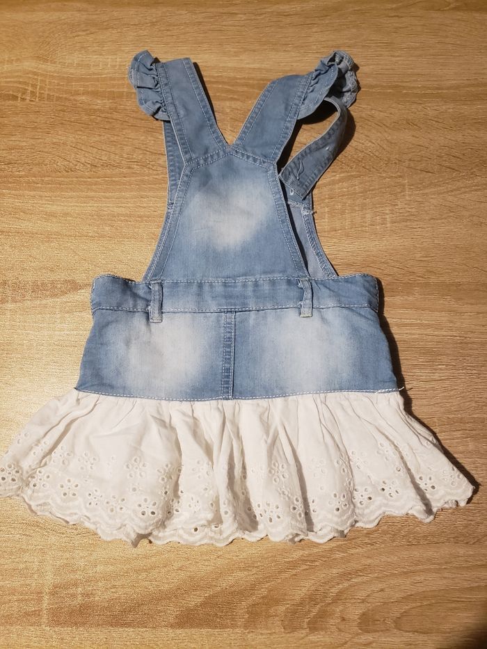 Petite robe avec le bas en dentelle blanc très bon état taille inscrite 6.9 mois 71 cm mais elle taille plus petit 6 mois je dirai 63 a 65 cm max 2e elle es en très bon état
