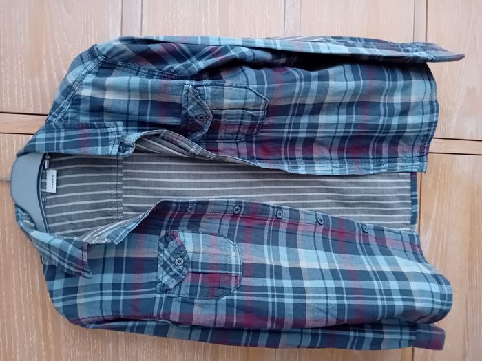 Chemise garçon de marque Name It en excellent état. Taille : 11/12 ans Couleur : bleu gris, bordeaux, beige. Peut être portée en surchemise.