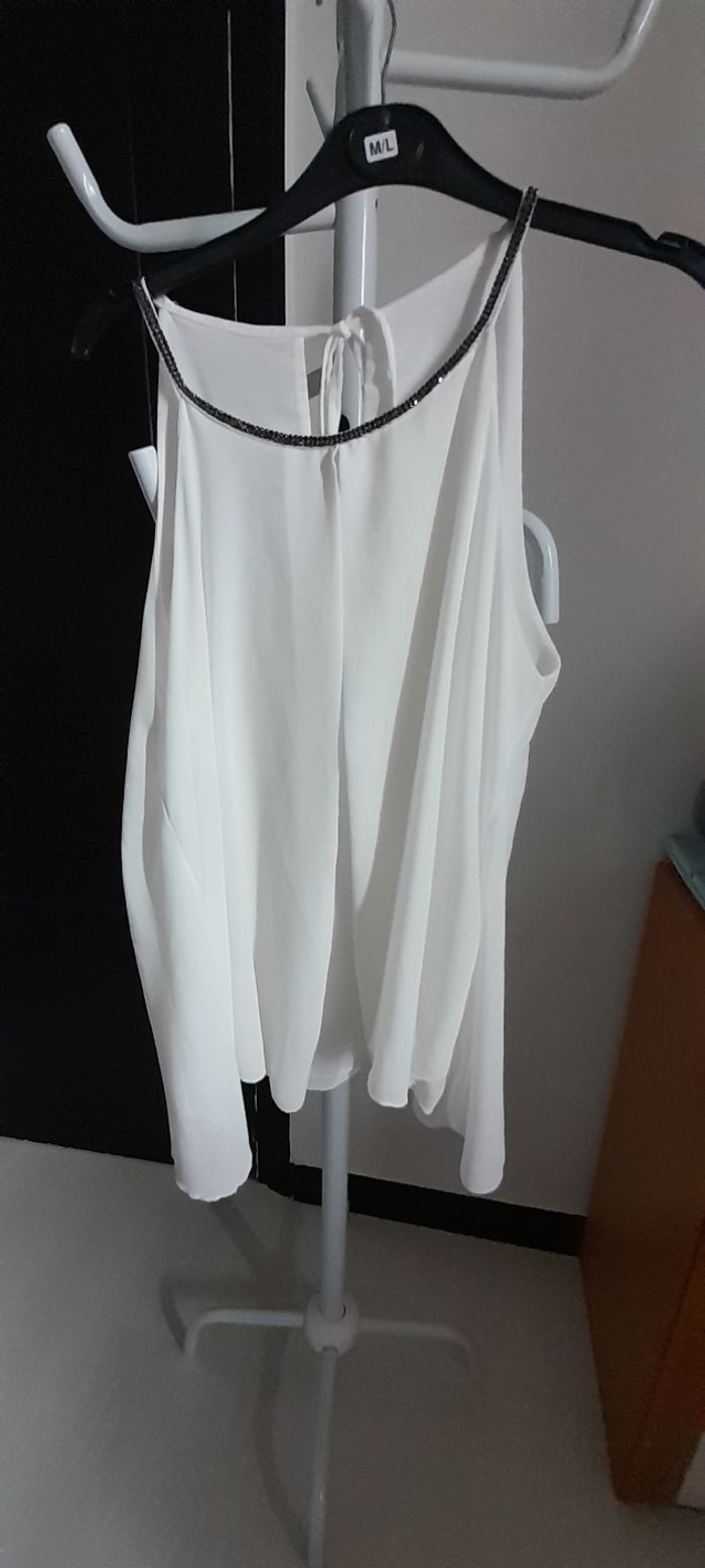 Haut T unique Couleur blanc cassé Amples 92% Polyester et 8 % Elasthane Attache cordon sur l'arrière du cou Quasi neuf