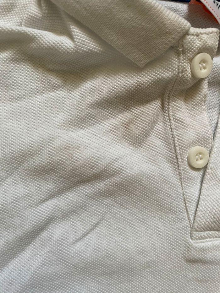 lot de 2 polos, dont un Tape à l’œil polos blanc légèrement taché #loulou7895_3ans