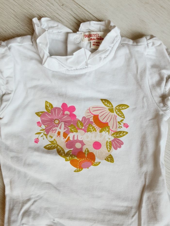 Vêtement bébé fille body manches courtes Fleurs Amour Du pareil au même DPAM 18 mois