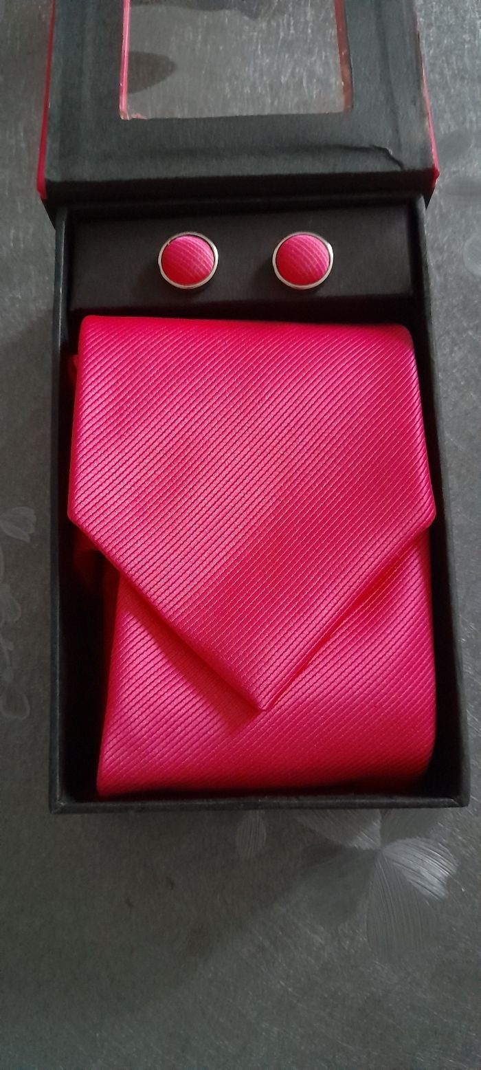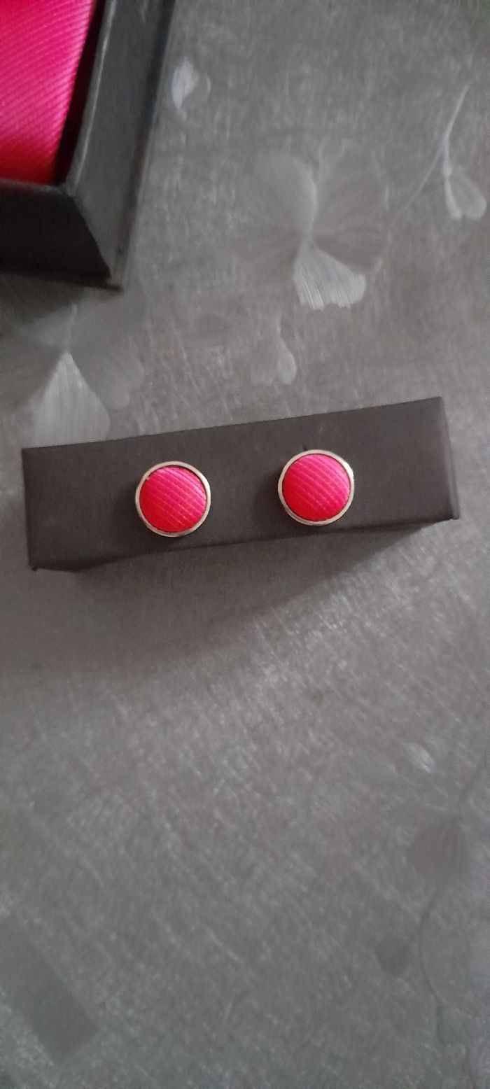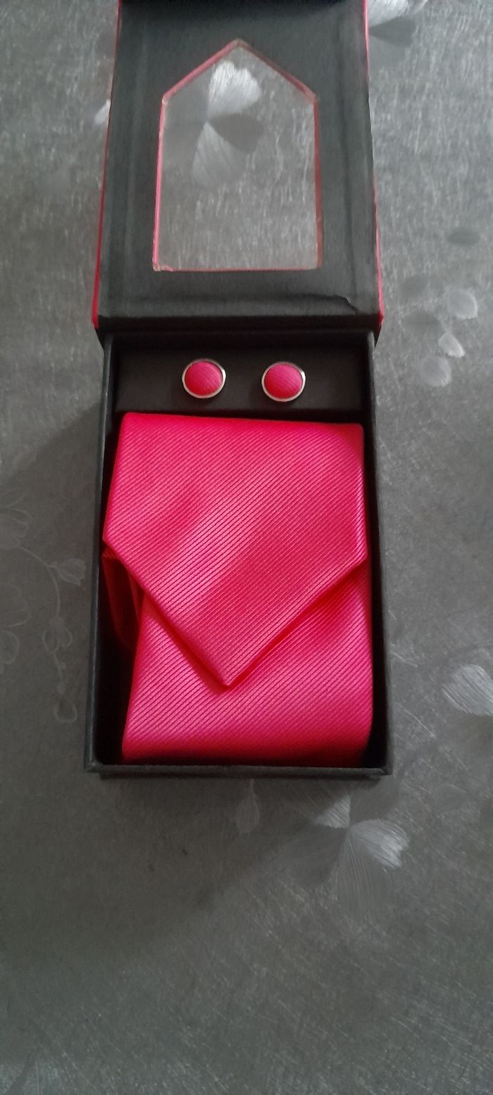 Coffret cravate + boutons de manchette Couleur fuchsia Dans sa boîte d'origine Neuf jamais porté