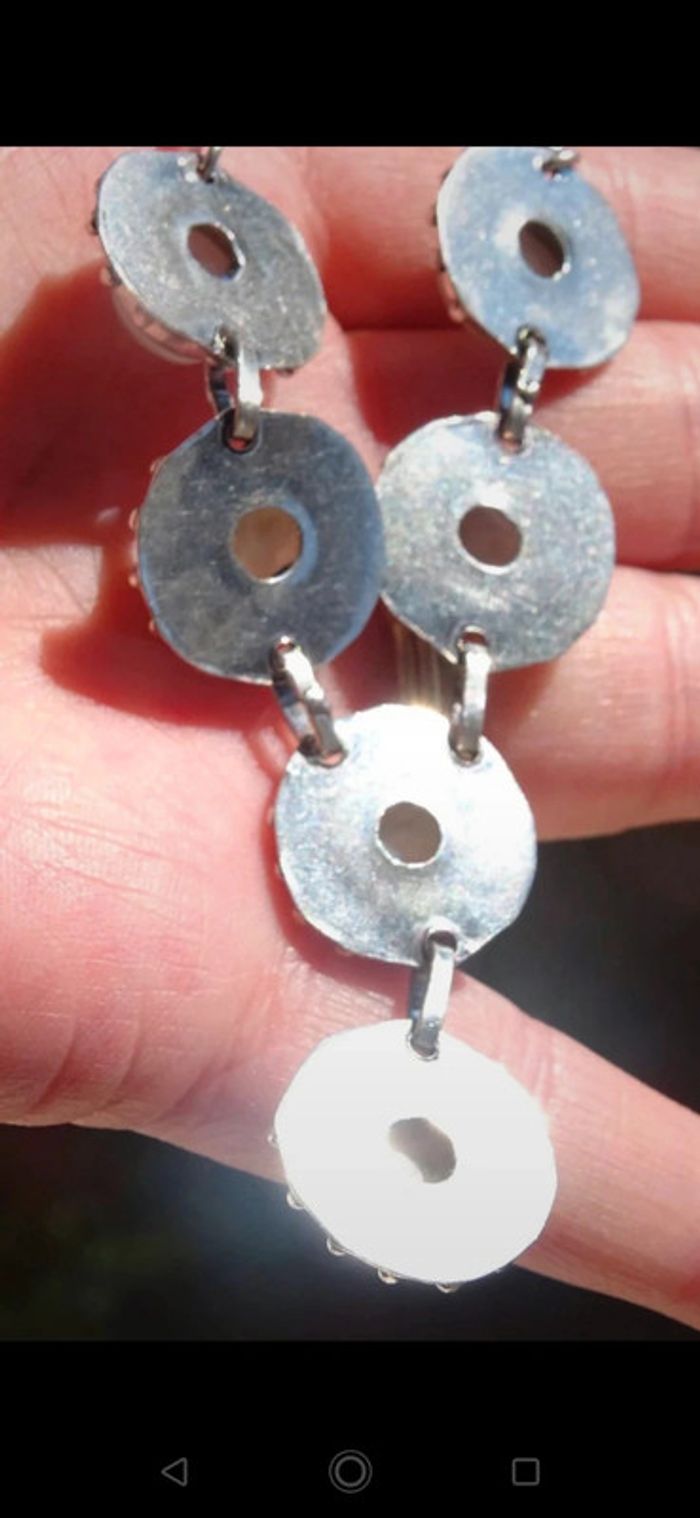 Beau ,je ne l.ai jamais porté, mention 925 au dos. Juste le collier. J ai des boucles d oreilles , si vous souhaitez