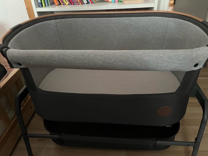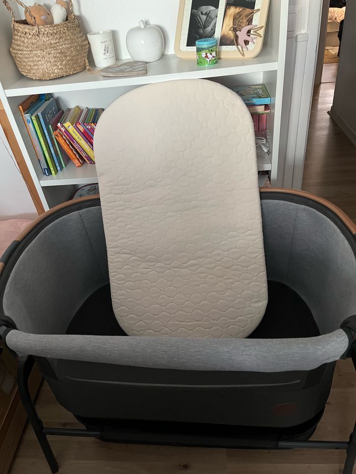 Cododo maxi cosy servit 4 mois. Un peu abîmée suite au mobile voir photo . Je donne deux draps housse avec et une protection . Merci