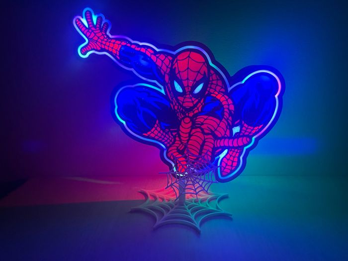 Lampe Spider-Man réalisée avec une imprimante 3D. Bande led incluse, sans piles. Les lumières peuvent être de différentes couleurs (voir photos). Frais de ports non inclus dans le prix. Envois soigné ou à venir chercher. N'hésitez pas à me contacter si vous avez des questions. 😉
