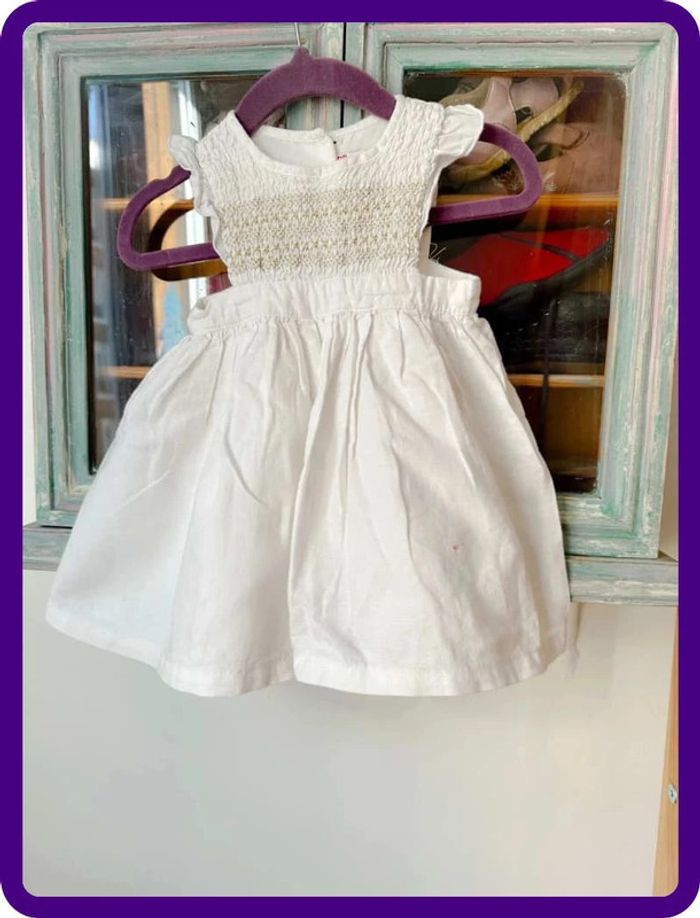 Robe porté une fois pour un baptême. Elle est en très bon état. Présence d'une tache rose sur la robe. #inayah6mois #robeblanche6mois #robebapteme #robesansmanche #dupareilaumeme