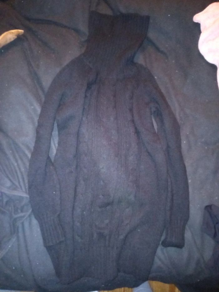 Pull noir à col roulé. Acheté sur ce même site. Porté quelques fois en très bon état. Je ne sais pas la taille.