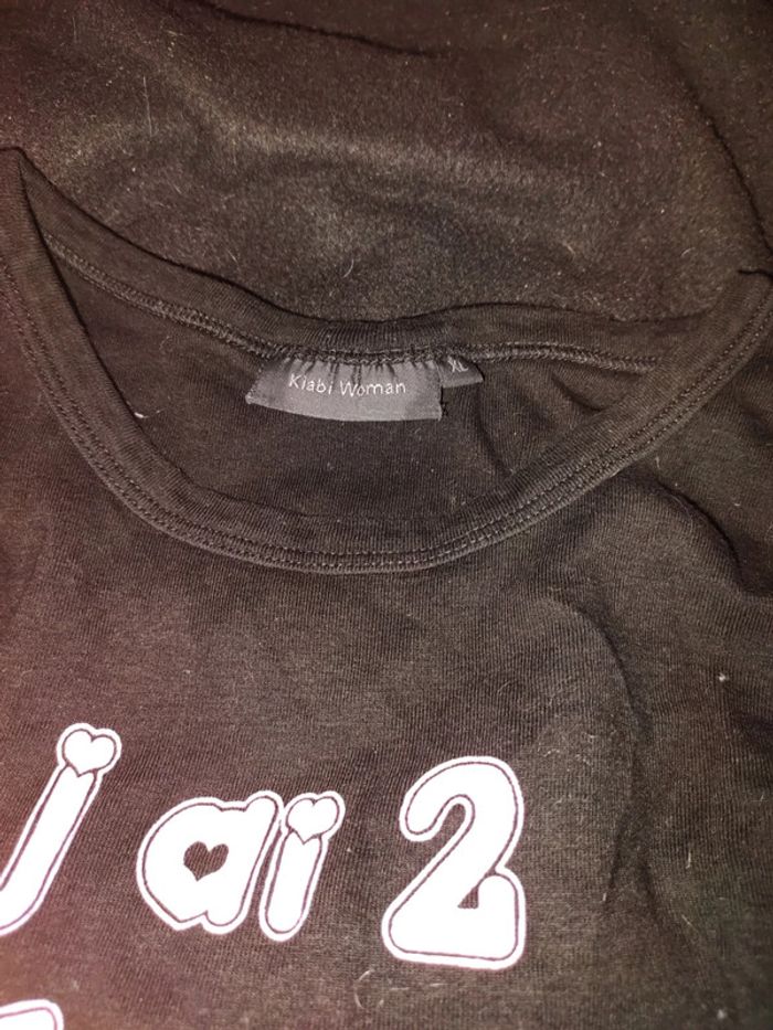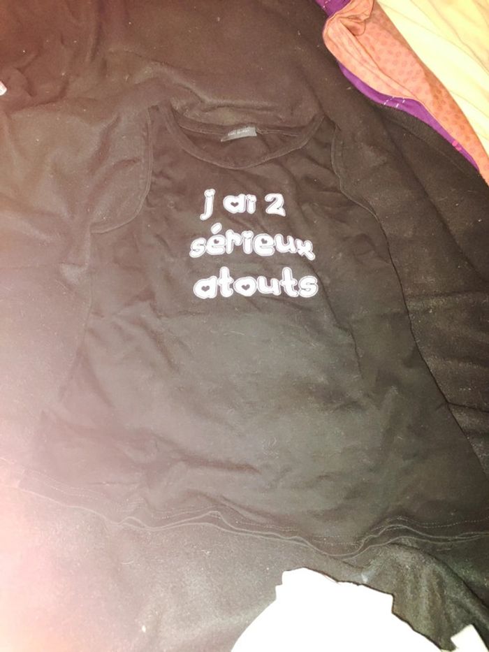 Débardeur noir Kiabi XL avec écrit j'ai 2 sérieux atouts. Porté quelques fois en très bon état.