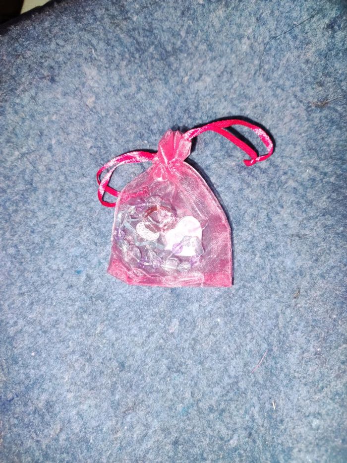 Bracelet + bague reine des neiges dans pochette rose.