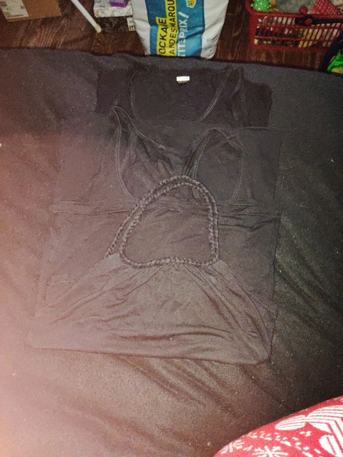 Lot de 3 débardeurs noir. Deux S et un taille unique. Jolinesse, un sans marque et un miss coquine. Porté quelques fois en bon état.