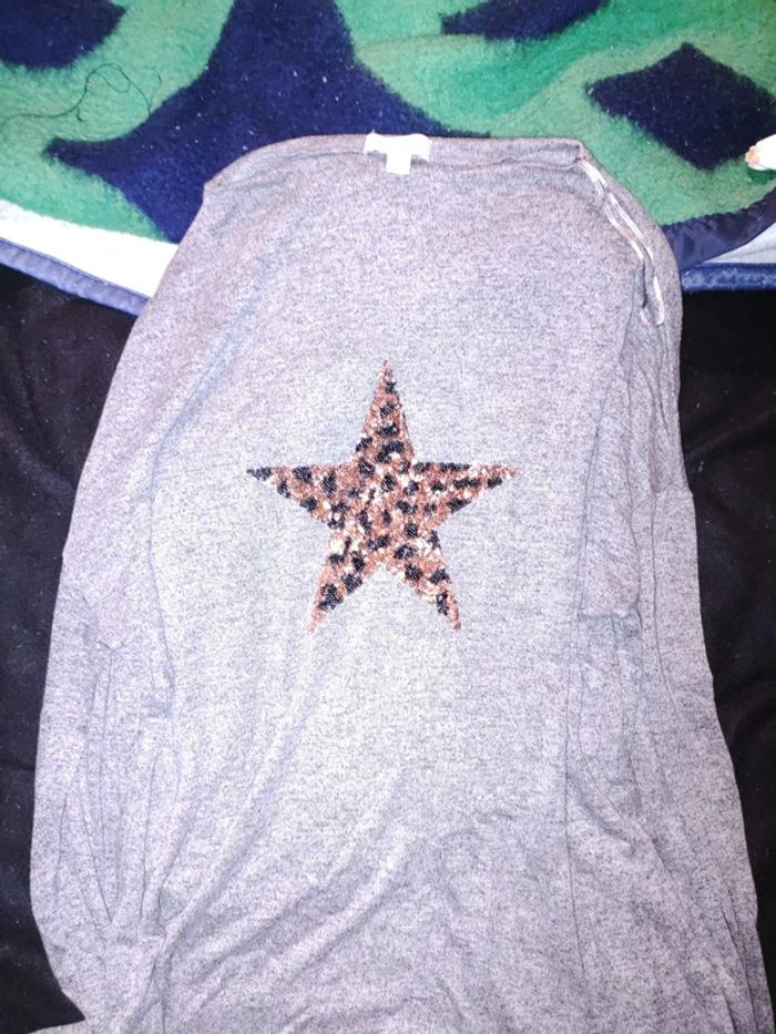 Pull gris avec étoiles nice & chic. Taille L. Porté quelques fois en bon état.
