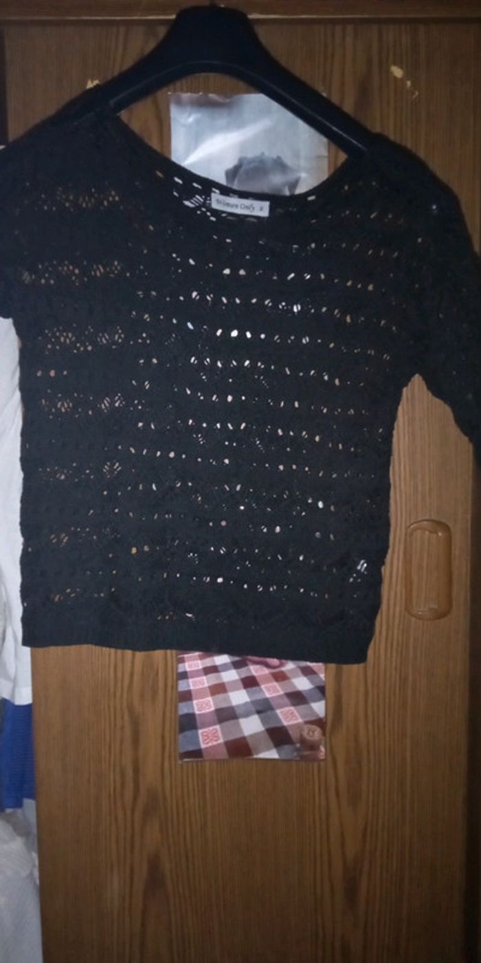 Pull noir women only taille 2. Manches 3/4. Porté quelques fois en bon état. Pull est en crochet.