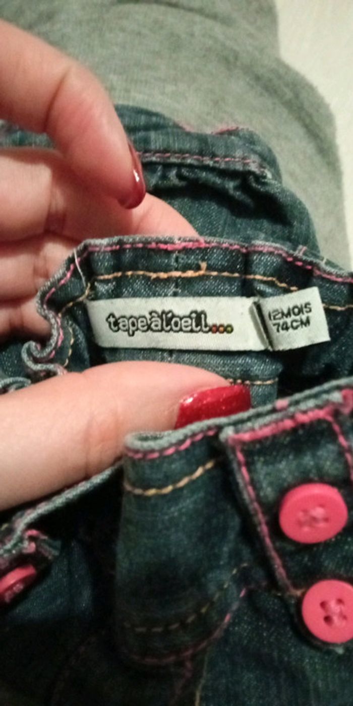 Short en jean bleu foncé tape à l'oeil taille 12 mois.