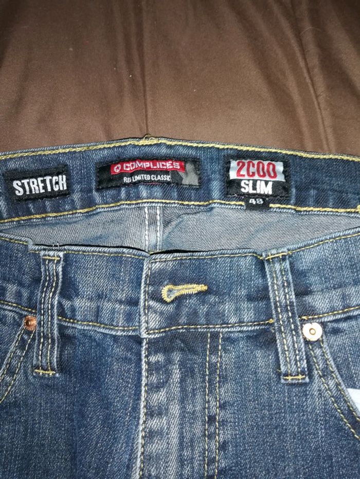 Pantalon bleu foncé stretch complices taille 48 slim. Correspond plus à un 44 qu'à un 48. Porté quelques fois en bon état. Pantalon pour homme.