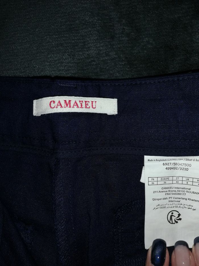 Pantalon en lin bleu marine taille 36