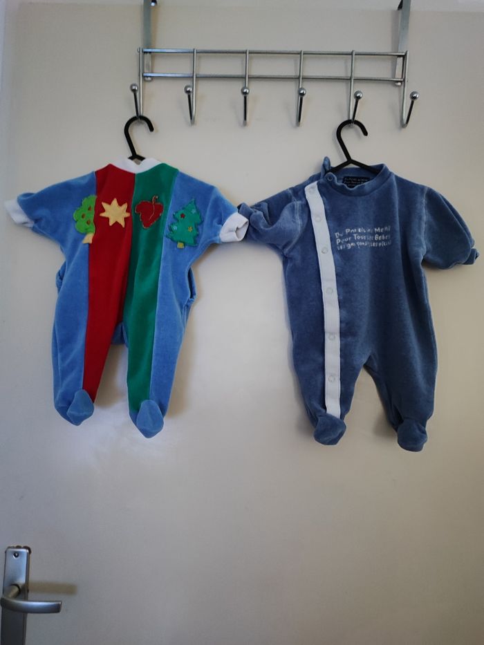 Lot de 2 superbes pyjamas bébés mixte Imprimé Coton polyester Tout mes vêtements bébé sont lavés et désinfectés Bleu du pareil au même Coloré absorba Taille 1 mois Tout les pyjamas sont chaud idéal hiver