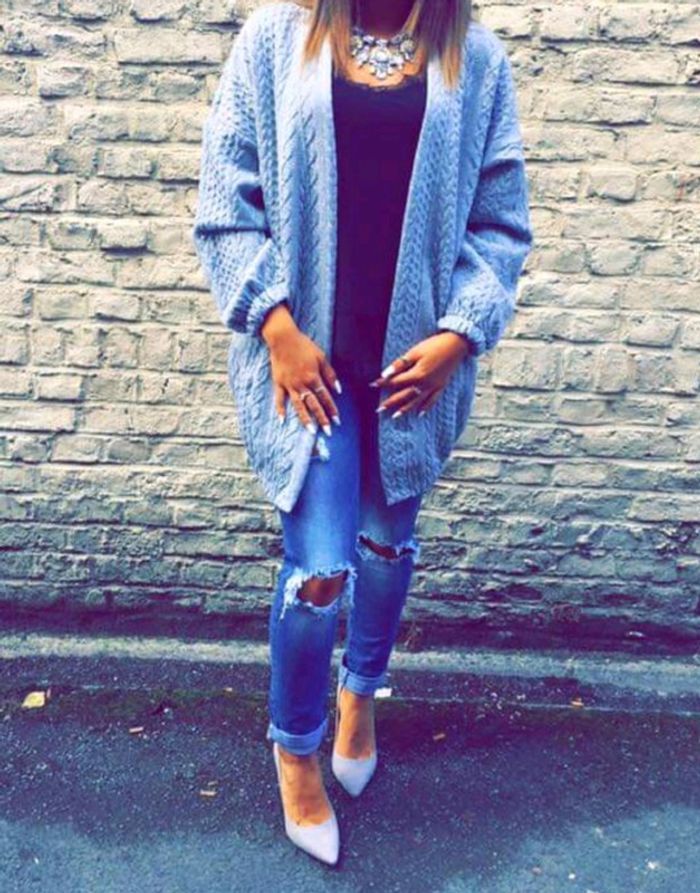 Gilet noir Effet tresse Poche Taille unique Se porte comme le gris clair #tailleuniquesencabil