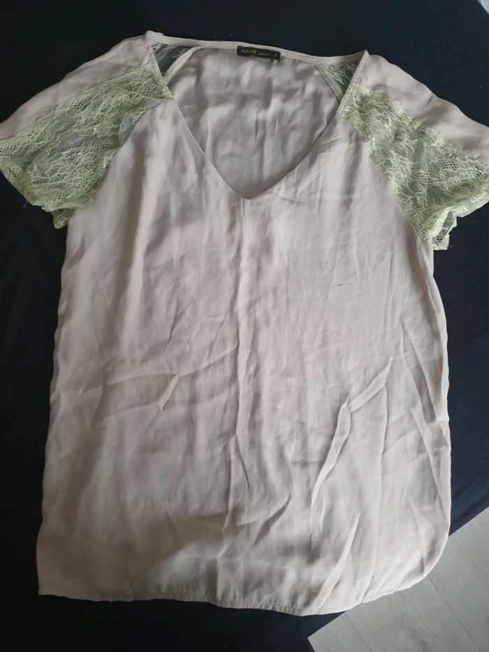 T shiet fluide Detail dentelle sur le manche Couleur vert clair Taille s