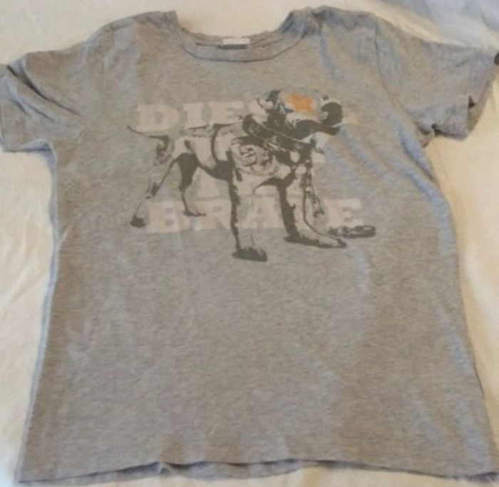tee shirt diesel gris avec un chien kaki et écriture blanche taille M (10-12 ans) en très bon état.