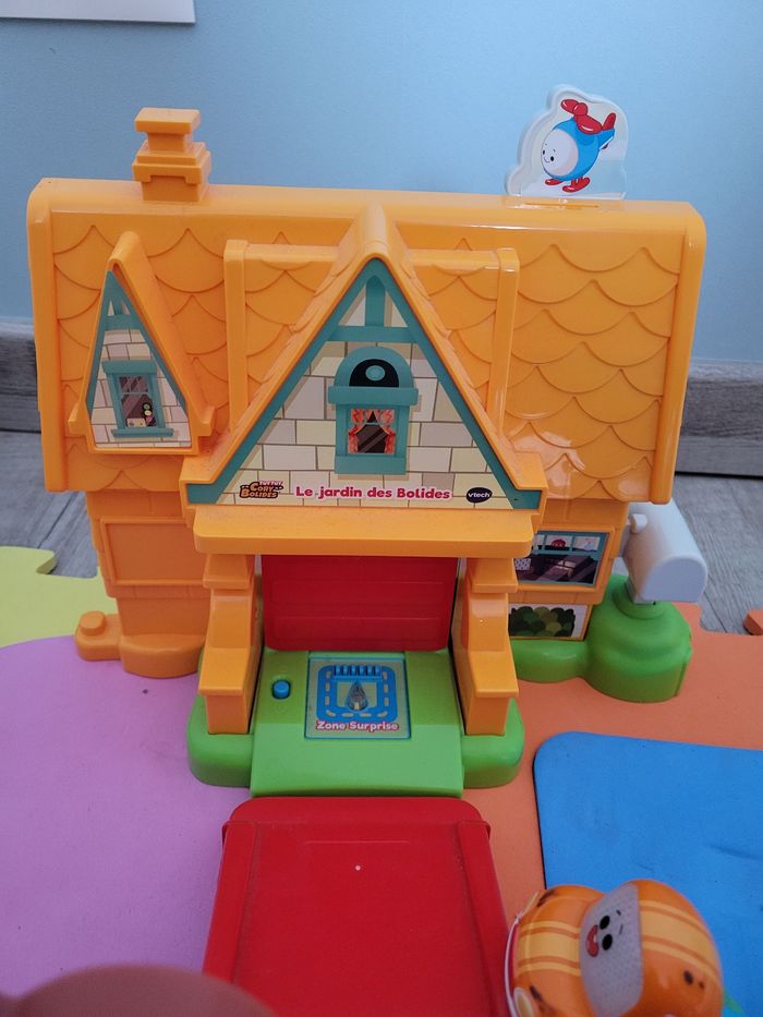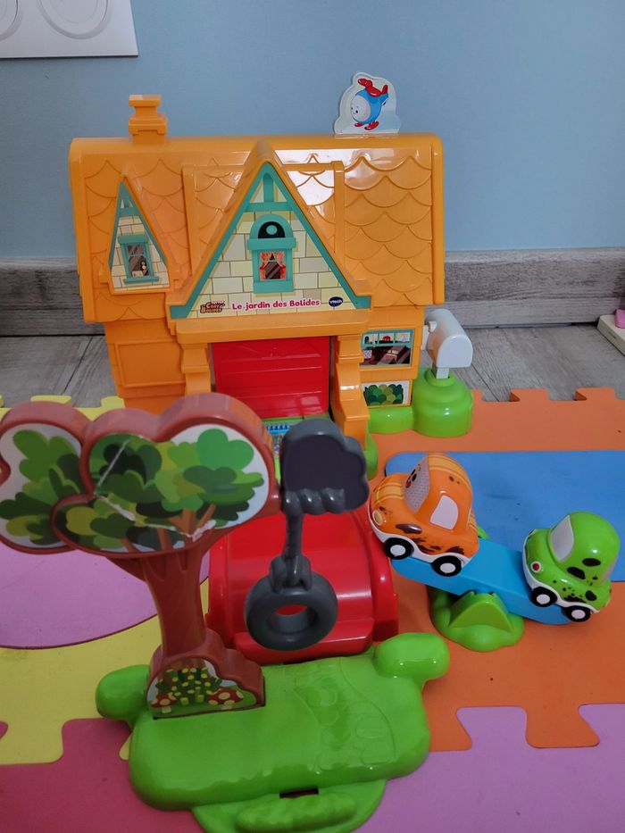 Tut Tut Cory Bolides. Le jardin des Bolides. De 1 à 5 ans. Le jardin des Bolides est prêt à accueillir tout le monde pour s'amuser. Les deux mini véhicules peuvent être placés sur la bascule pour jouer ensemble ! Une balançoire et un lanceur pour des heures de jeu ! Grâce au picots, l'enfant assemble et désassemble l'univers très facilement. 1 Zone Surprise qui fait interagir tous les minis véhicules + 1 Zone Magique Inclus : deux minis véhicules non électroniques (Cory + Chrissy) compatible avec tous les univers Tut Tut Cory Bolides 2 chansons, 6 mélodies et plein de sons amusants Arrêt automatique Fonctionne avec 3 piles LR6/AA non fournies Manque 1 stickers au niveau de la rampe et le stickers de l'arbre à été légèrement malmené