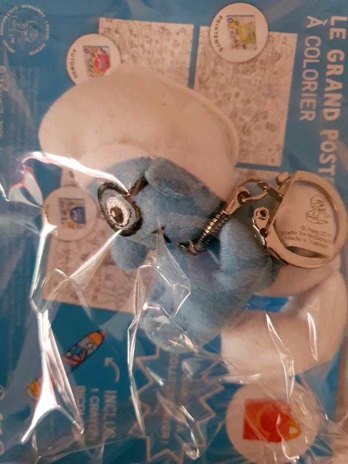 Lot porte clés Schtroumpfs à lunettes et un grand poster hiver à colorier avec son crayon bicolore. OMY