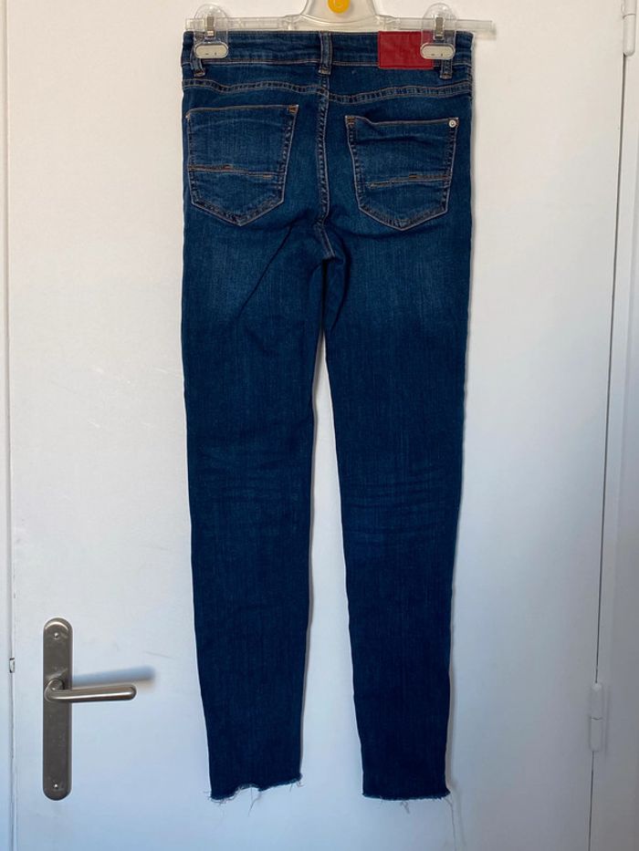 Jean bleu marine Trous au niveau des genoux Bas des jambes effet déchiré Taille 34 #sev0811_92_femme #sev0811_92_femme34