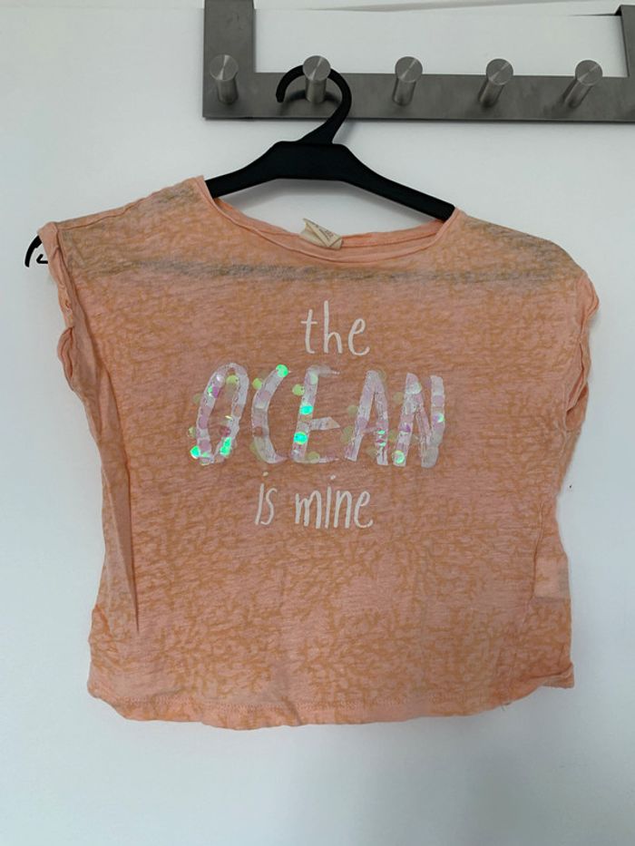 T-shirt court saumon Marque Zara Rond brillants cousus sur le lot océan Taille 6/7 ans (122 cm) #sev0811_92_enfant #sev0811_92_enfant6ans #sev0811_92_enfant7ans