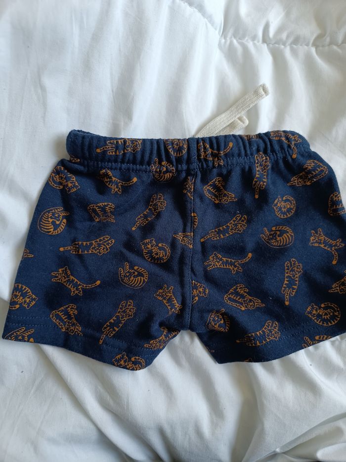 Short bleu avec des dessins de tigre. Taille élastique avec cordon.Taille 92 cm