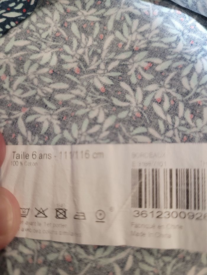 Blouse manches longues avec col. Reserré aux bouts des manches. Trois boutons dans le dos. Imprimés florales. Petite poche sur la poitrine. Marque : Monoprix Kids Taille : 6 ans