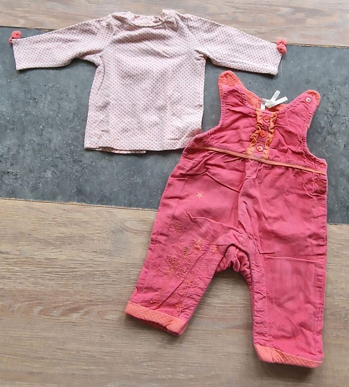 Vends ensemble fille 1 mois : 1 salopette + t shirt manches longues