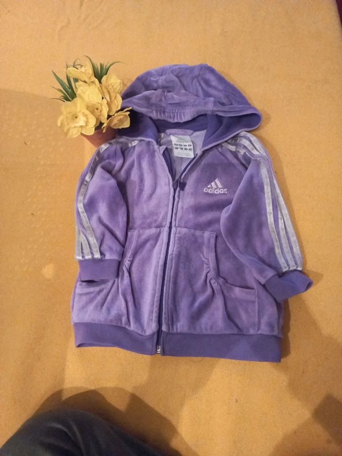 Sweat a capuche gilet adidas 1 a 2 ans mauve et argenté