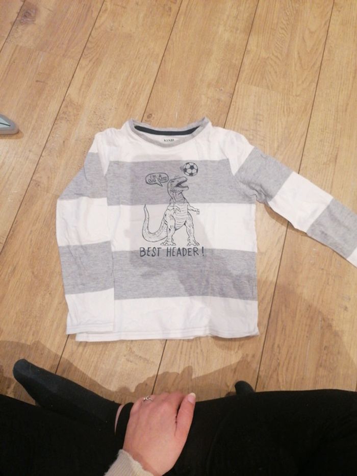 T-shirt manches longues de ce Kiabi 8 ans avec des dinosaures