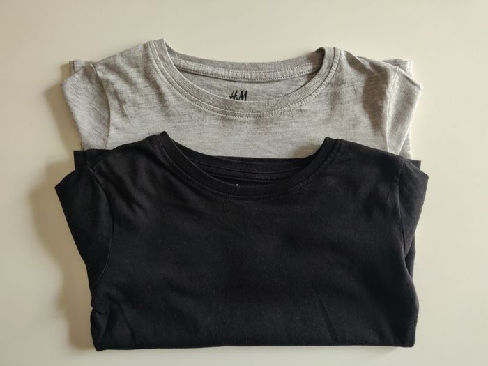 Lot de 2 tee shirts basique H&M 18-24 mois petit trou sur le tee shirt gris mais discret sinon en très bon état