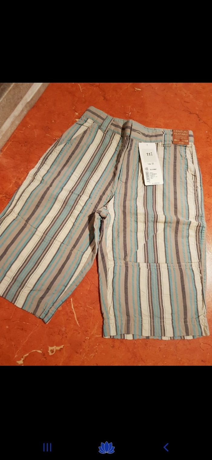 Joli bermuda à rayures, réglable à la taille. Neuf