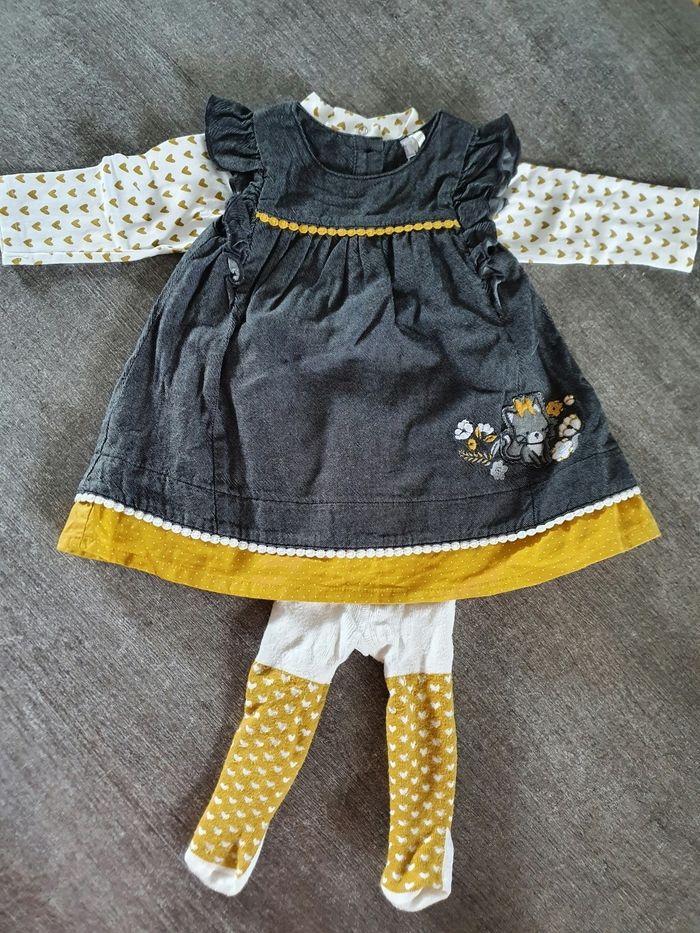 Ensemble 3 pièces : - robe - tee shirt manches longues - 1 paire de collant Portée 2/3 fois. Excellent état limite neuf.