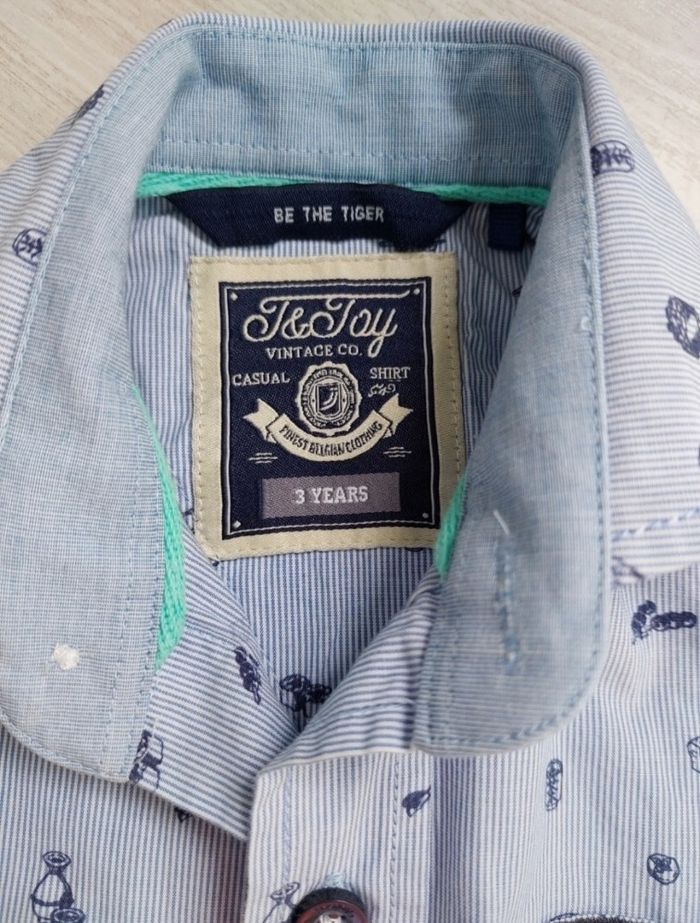 Chemise Jn-Joy taille 3ans. Il manque un bouton à la manche gauche (voir photo) mais état impeccable à part ça.