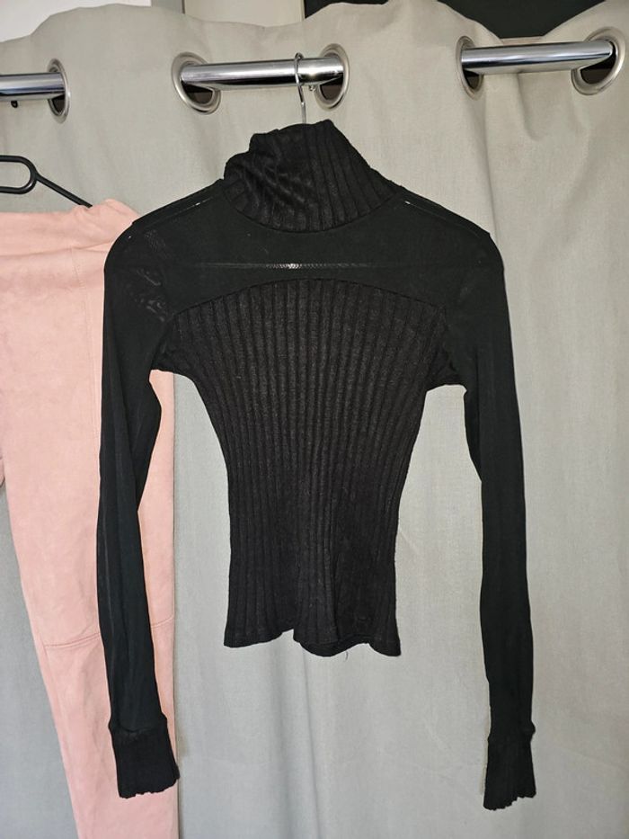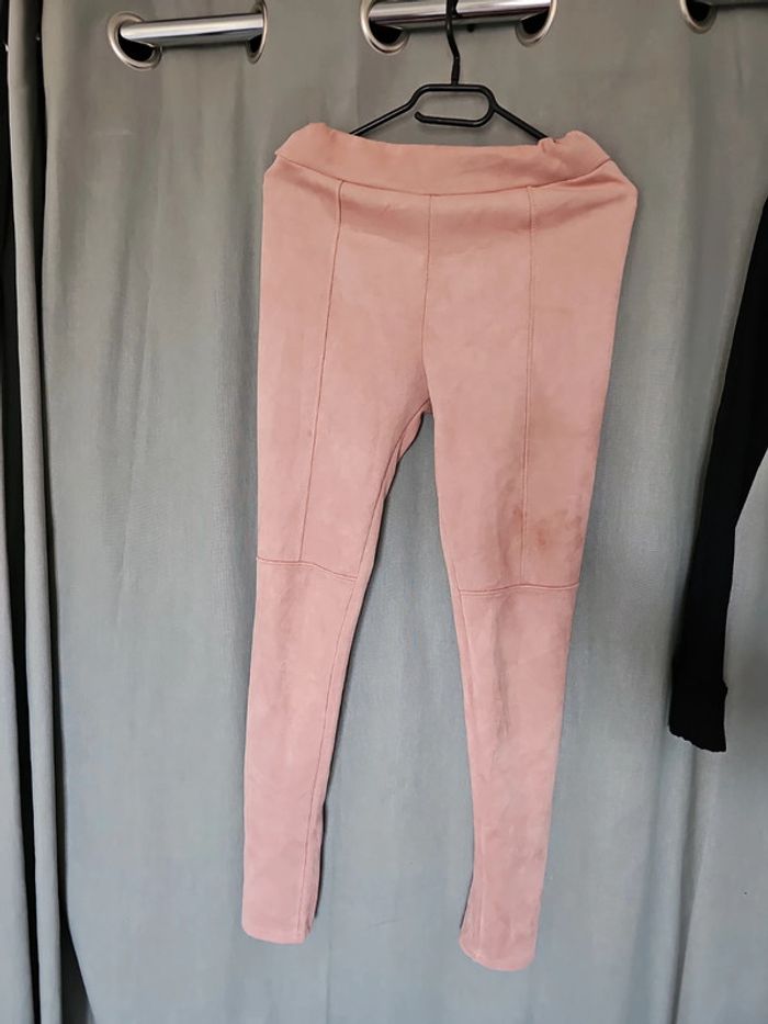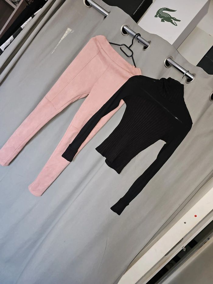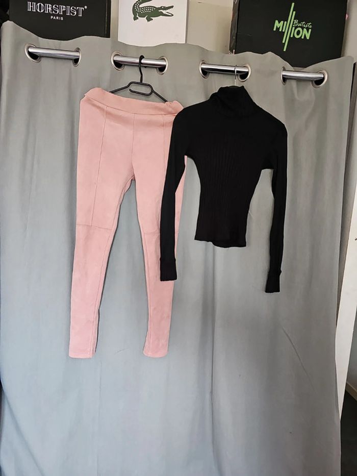 Ensemble femme taille M col rouler noir et pantalon daim rose