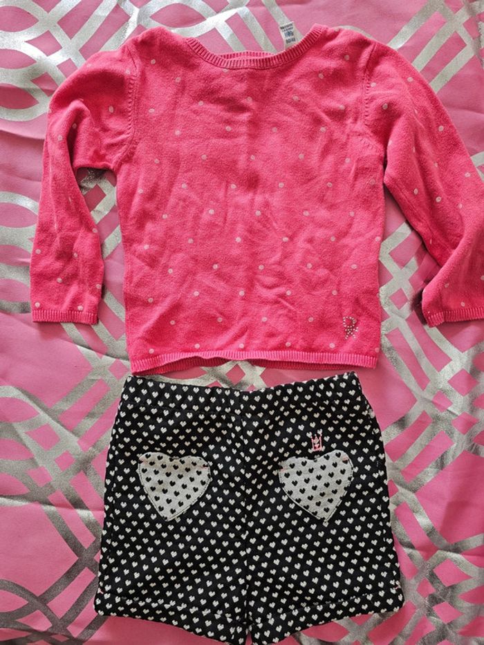 Short hiver jamais porté orchestra taille 36 et pull okaidi 2 ans