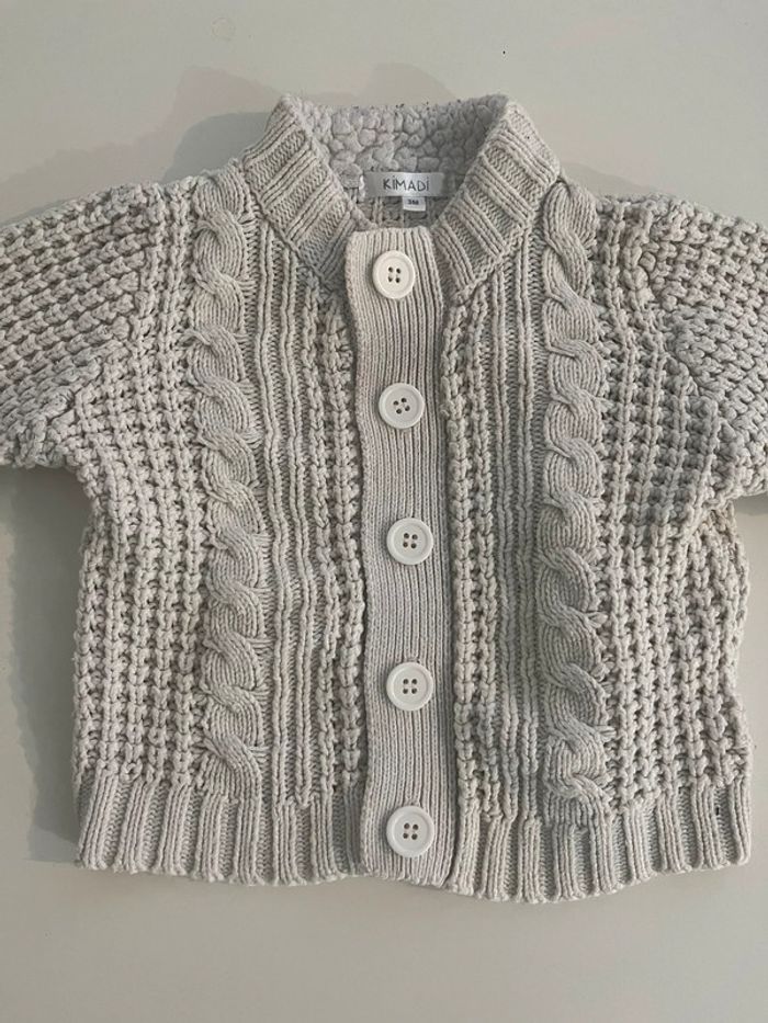 Veste chaude en maille tressée à boutons taille 3 mois mais convient à un 6 mois parfait état