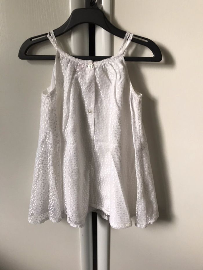 Une jolie robe habillée, sans manches, double bretelles, marque orchestra, taille 18 mois, très bon état, porter une seule fois, aucune tache