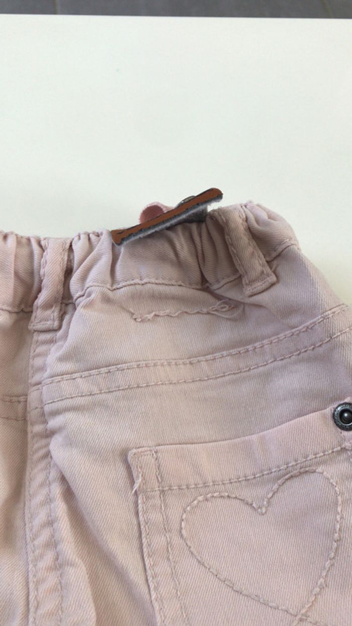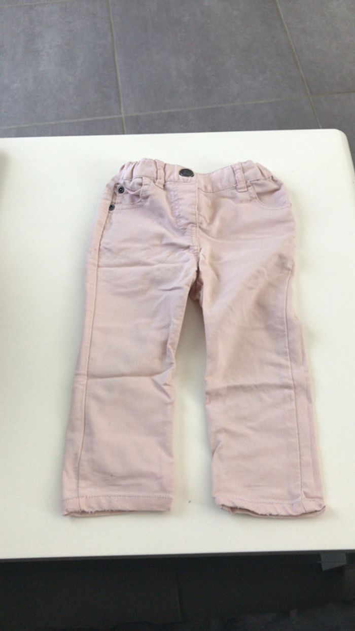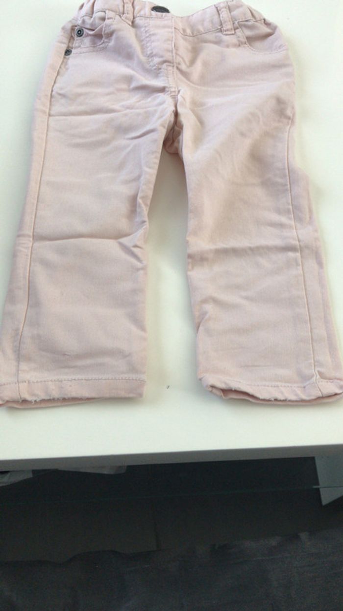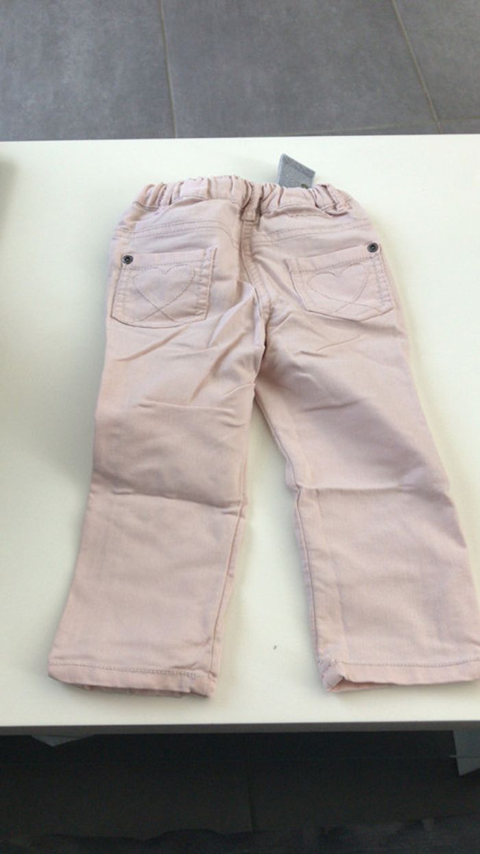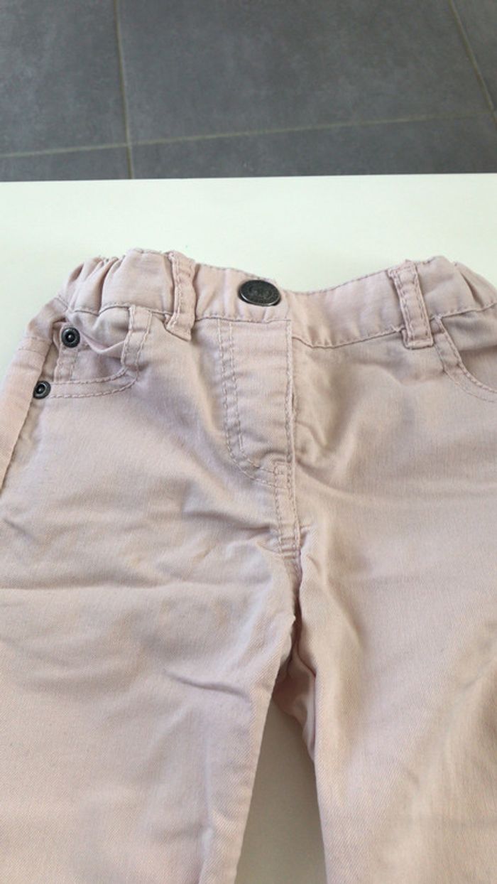 jeans rose fille, marque Vertbaudet, taille 2 ans, bon état, réglable à la taille par élastique, décousus au niveau de l’étiquette arrière comme sur photo, pas de taches