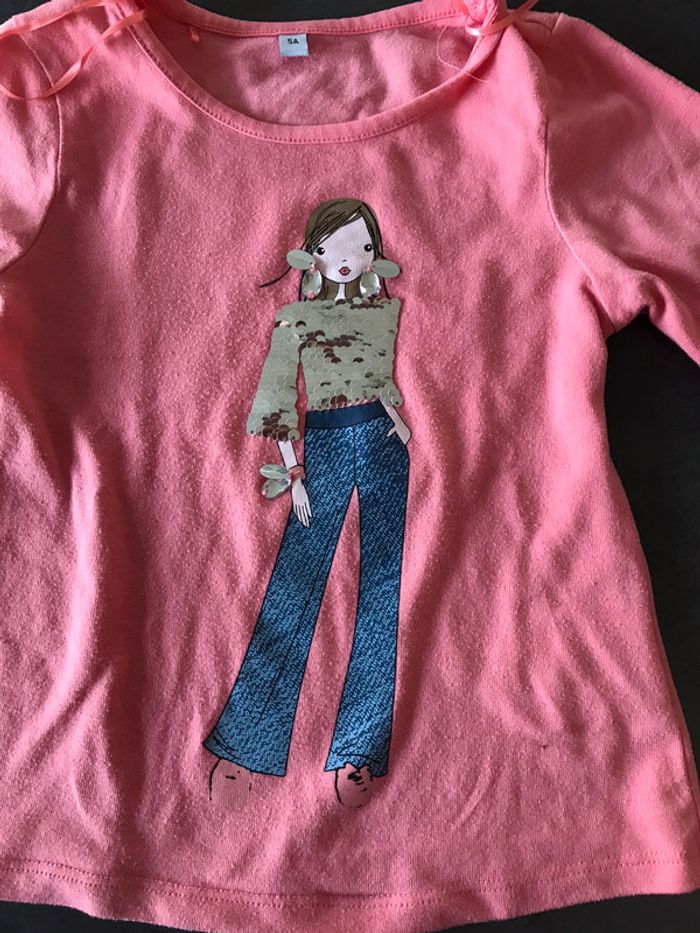 T-shirt manches longues fin, joli sequins réversible, taille 5 ans, marque Intermarché, très bon état, aucune tache