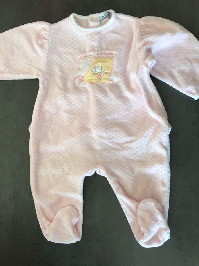 Pyjama fille velours, marque nuit d’étoiles, taille 3 mois, bon état, taches comme sur photo