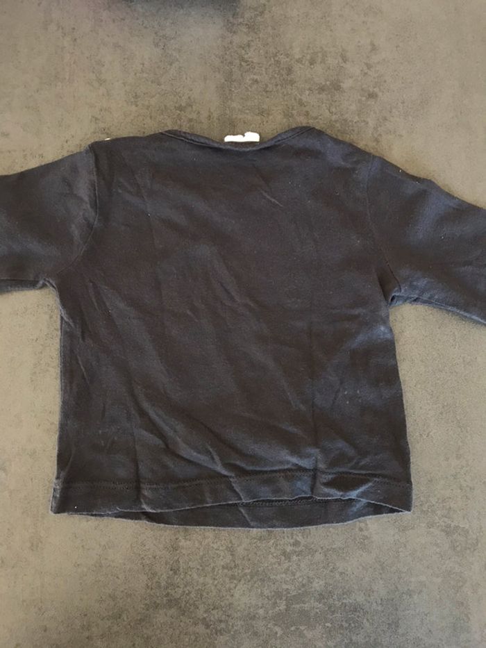 T-shirt léger fille, parfait pour la demi-saison, manches longues, taille 6 mois, très bon état, aucune tache, marque de pince à linge comme sur photo, marque kiabi (étiquette coupé comme sur photo car très longue)