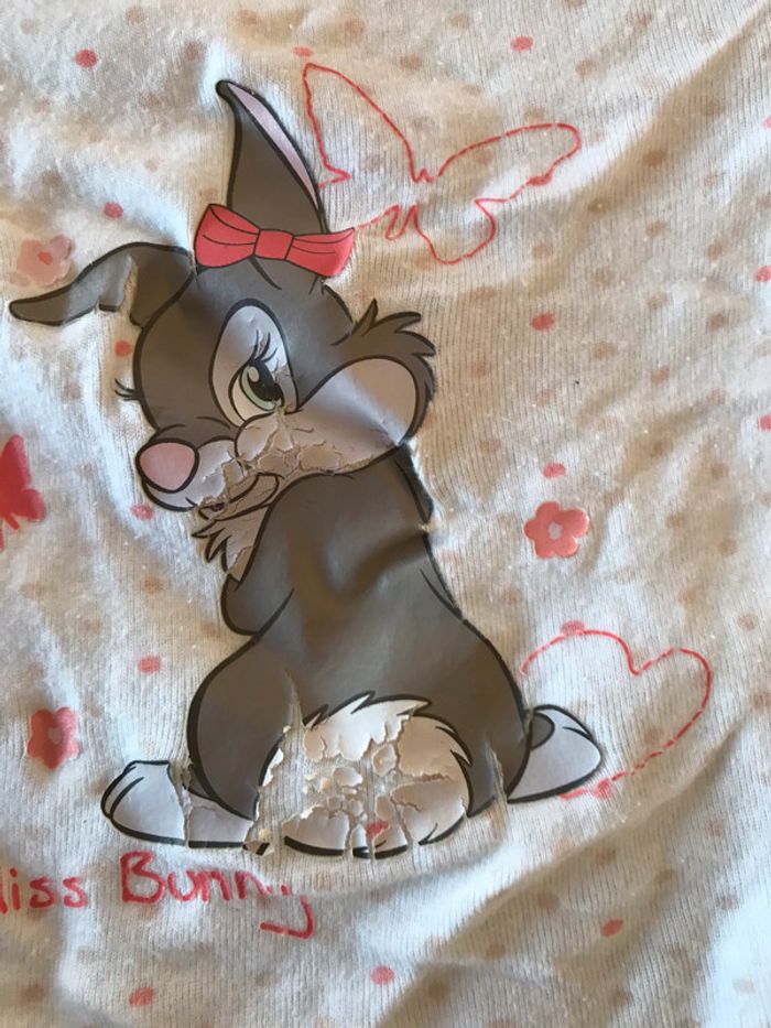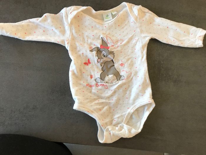 body marque Disney, bon état, pas de tache mais image craquelé comme sur photo, taille 6 mois